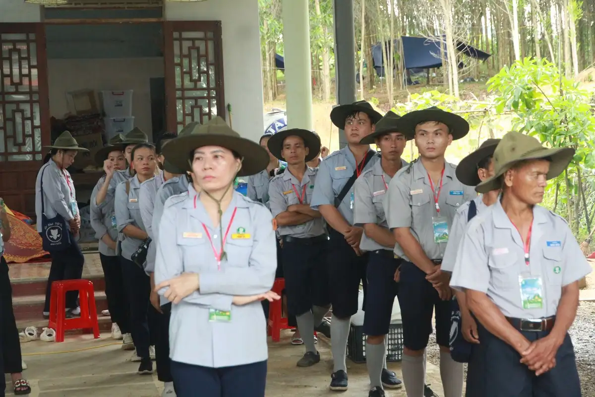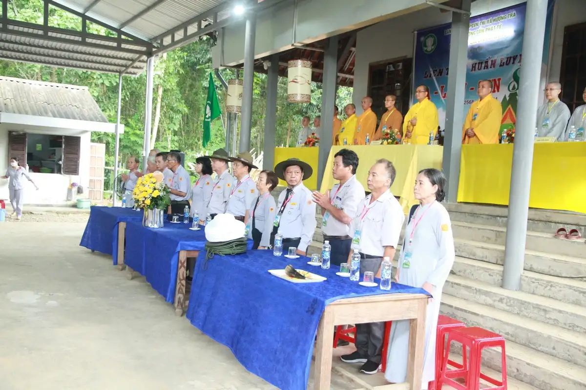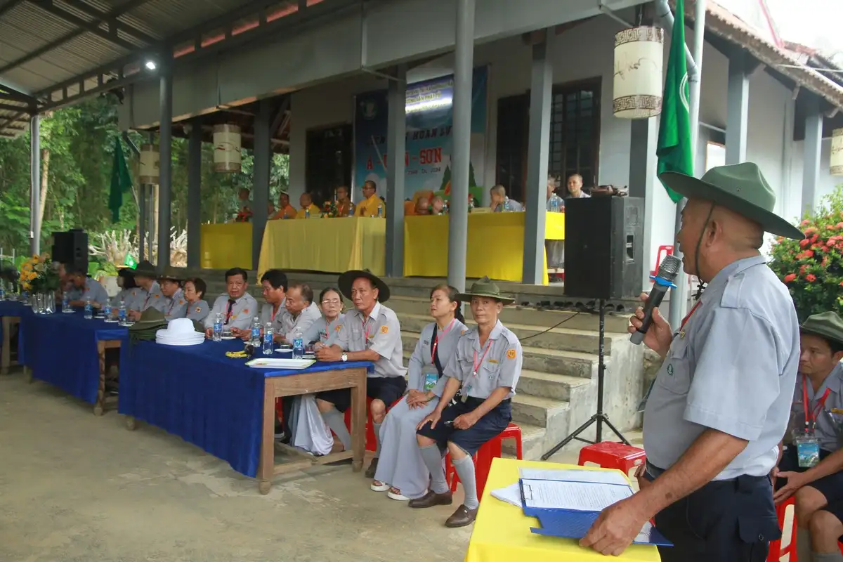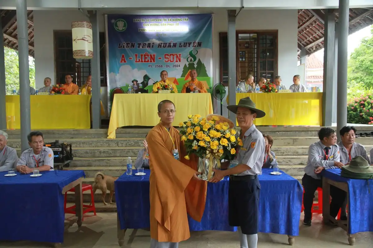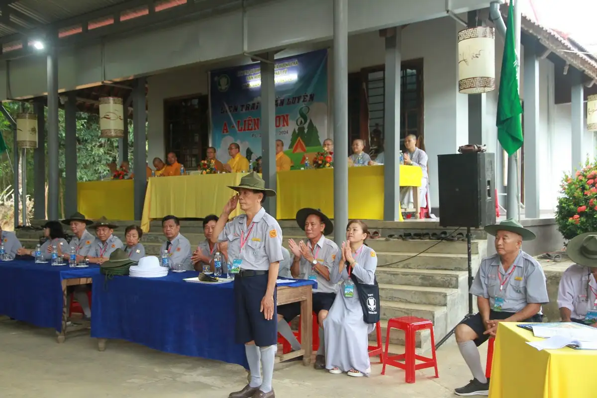 Về phía PB GĐPT thị xã Hương Trà có sự hiện diện của Huynh trưởng cấp Tín Quảng Nhơn – Lê Xuân Mẫu, Trưởng PB GĐPT thị xã Hương Trà, cùng quý anh chị trong thường trực phân ban. Tham dự lễ Khai mạc còn có quý bác trong Ban hộ tự các niệm Phật Đường trên địa bàn thị xã. Cùng 118 Trại sinh liên trại Huấn luyện A – Liên – Sơn 08.
