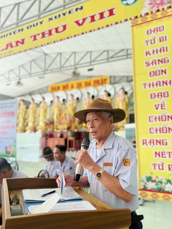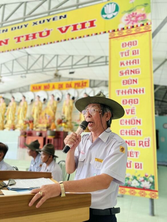 Thượng tọa Thích Trí Huệ -Trưởng Đoàn phát biểu chia sẻ những khó khăn của các em ĐS GĐPT Quảng Nam , Ngài có lời sách tấn động viên ACE GĐPT Quảng Nam nói chung và các em Đoàn Sinh khó khăn nói riêng- hãy luôn Tinh Tấn trong sinh hoạt xây dựng tổ chức Áo Lam- và là con ngoan của gia đình , Trò ngoan của nhà trường và Xã Hội.