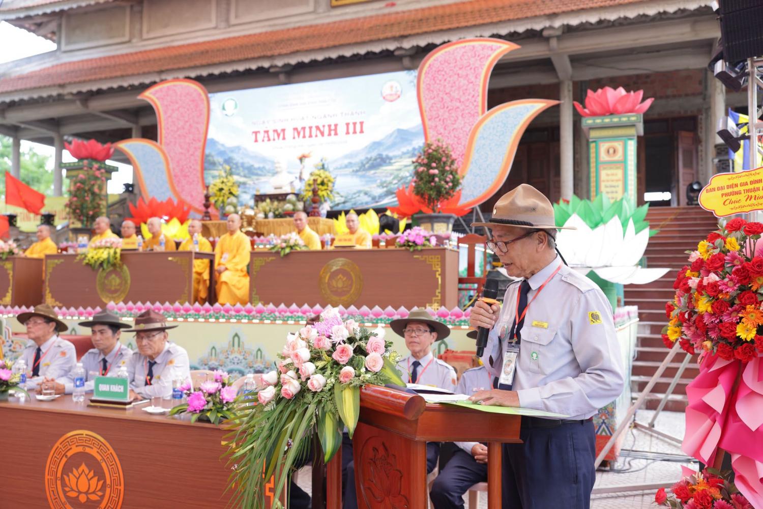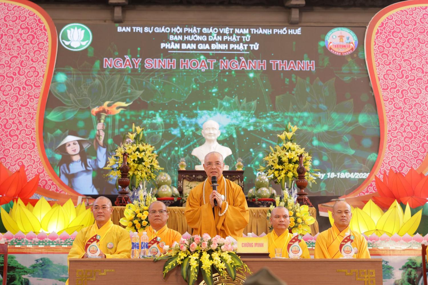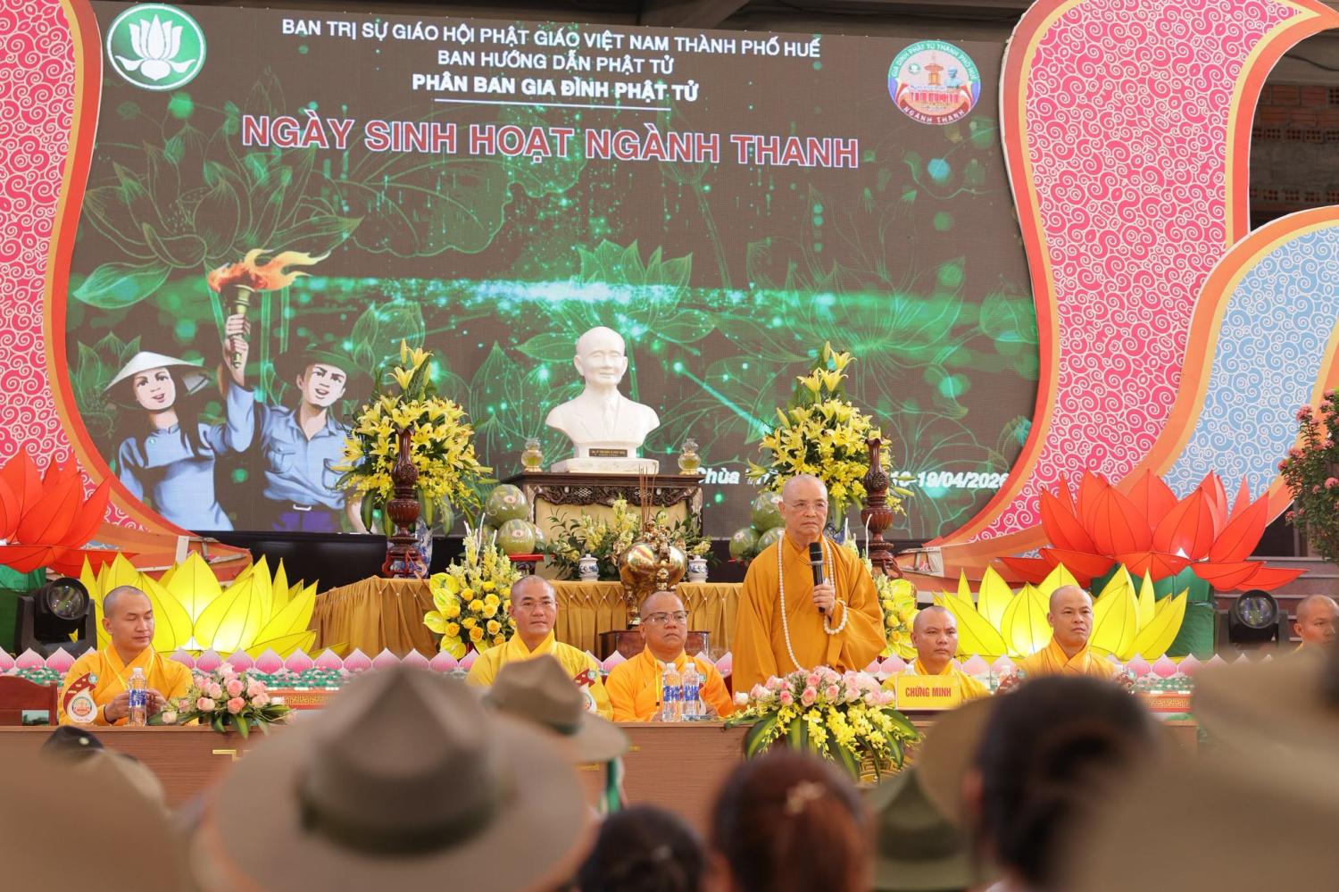 Ban đạo từ tại buổi lễ, HT.Thích Huệ Phước đã có lời tán dương công đức Ban Hướng dẫn Phân Ban GĐPT thành phố cùng các Huynh trưởng trong Ban Tổ chức đã tổ chức Ngày sinh hoạt ngành Thanh với nhiều hoạt động Phật sự ý nghĩa. Hòa thượng chia sẻ, truyền đạt về những hạnh nguyện của bác Tâm Minh Lê Đình Thám; đồng thời Hoà thượng đã nhấn mạnh 3 vấn đề: