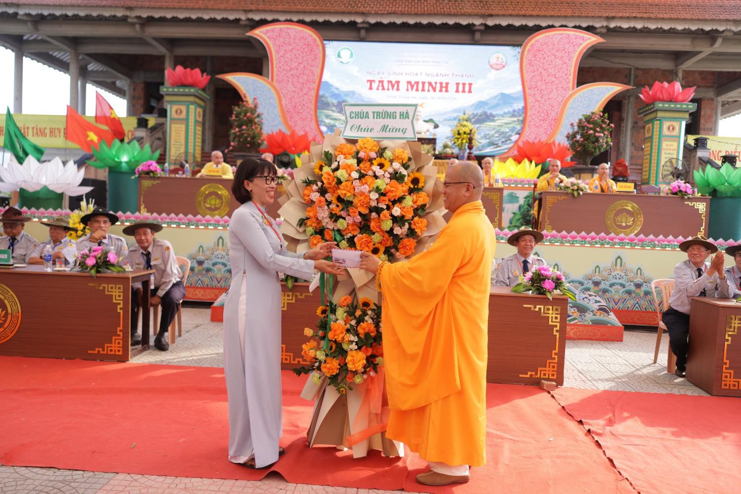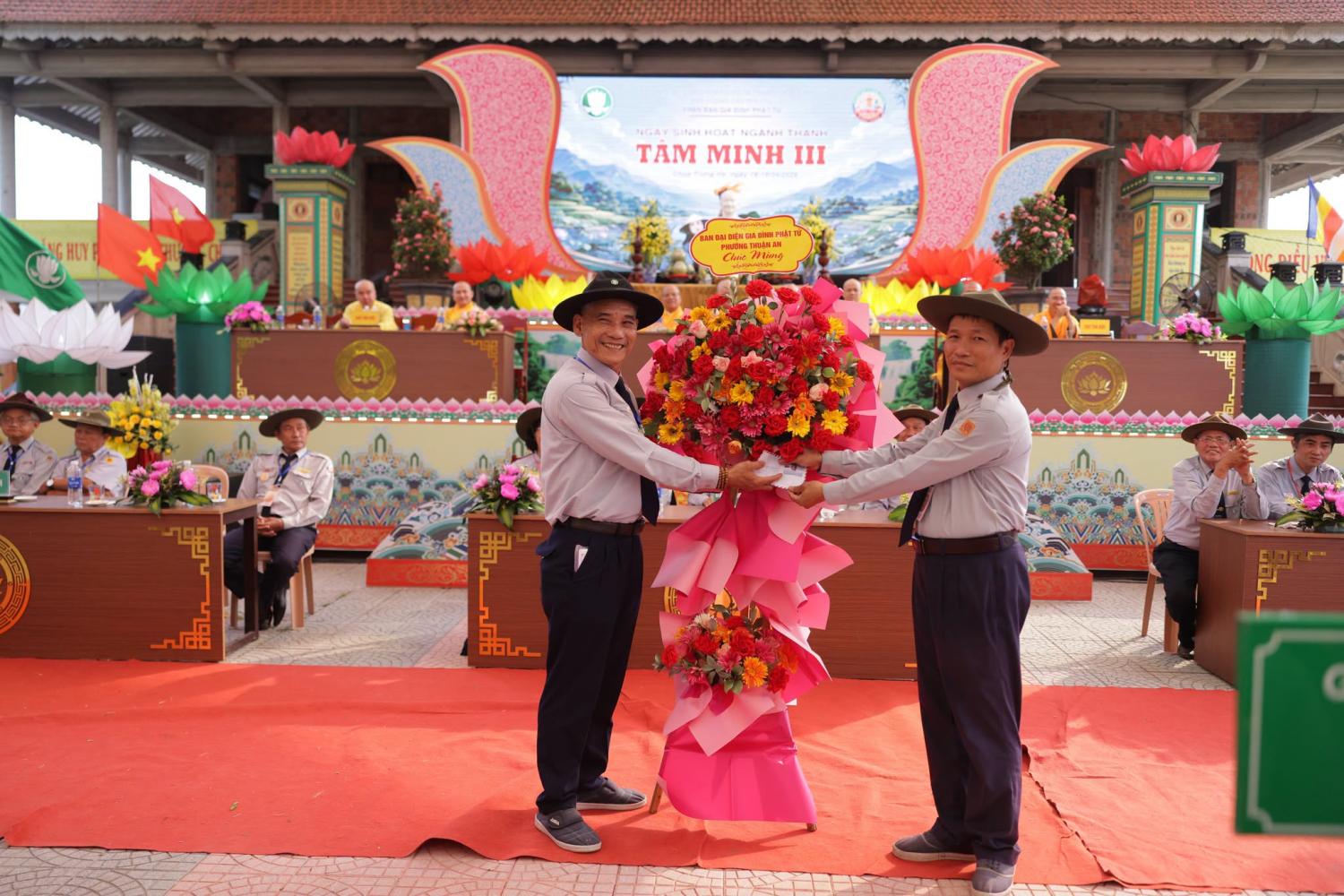 Tại buổi lễ, Ban tổ chức đã vinh dự đón những lẵng hoa tươi thắm, những món quà đầy ý nghĩa đến từ Chư tôn đức, quý Ban đại diện GĐPT các phường xã, quý vị quan khách.