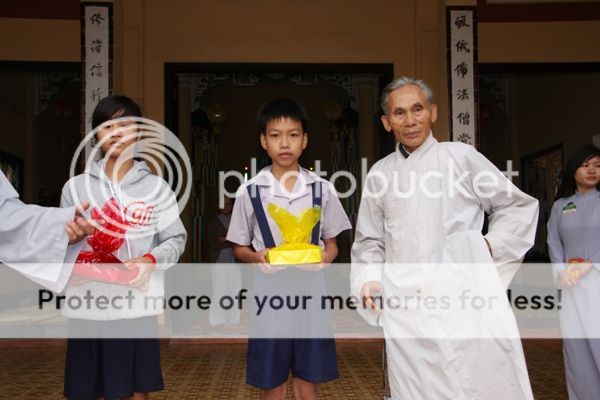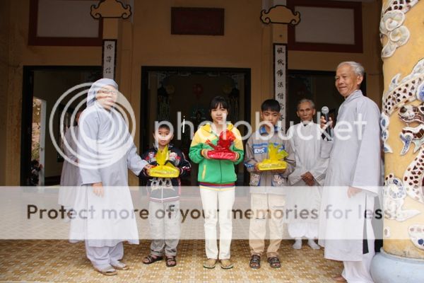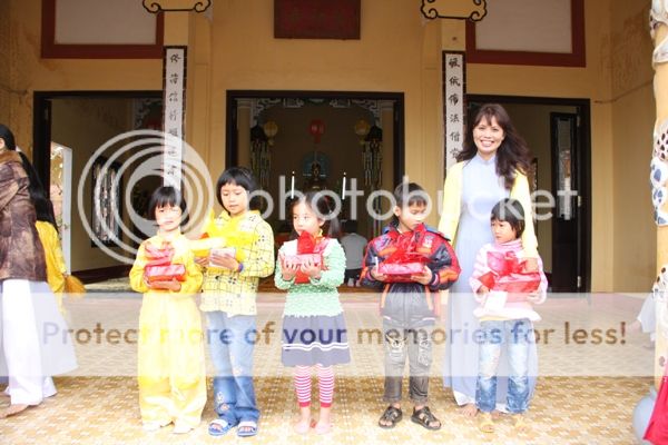Tiếp theo sau phần chúc Tết là phần tặng quà cho người già neo đơn và các trẻ em nghèo mồ côi trong làng Đốc Sơ mỗi phần quà trị giá 300.000 đồng bằng hiện kim.