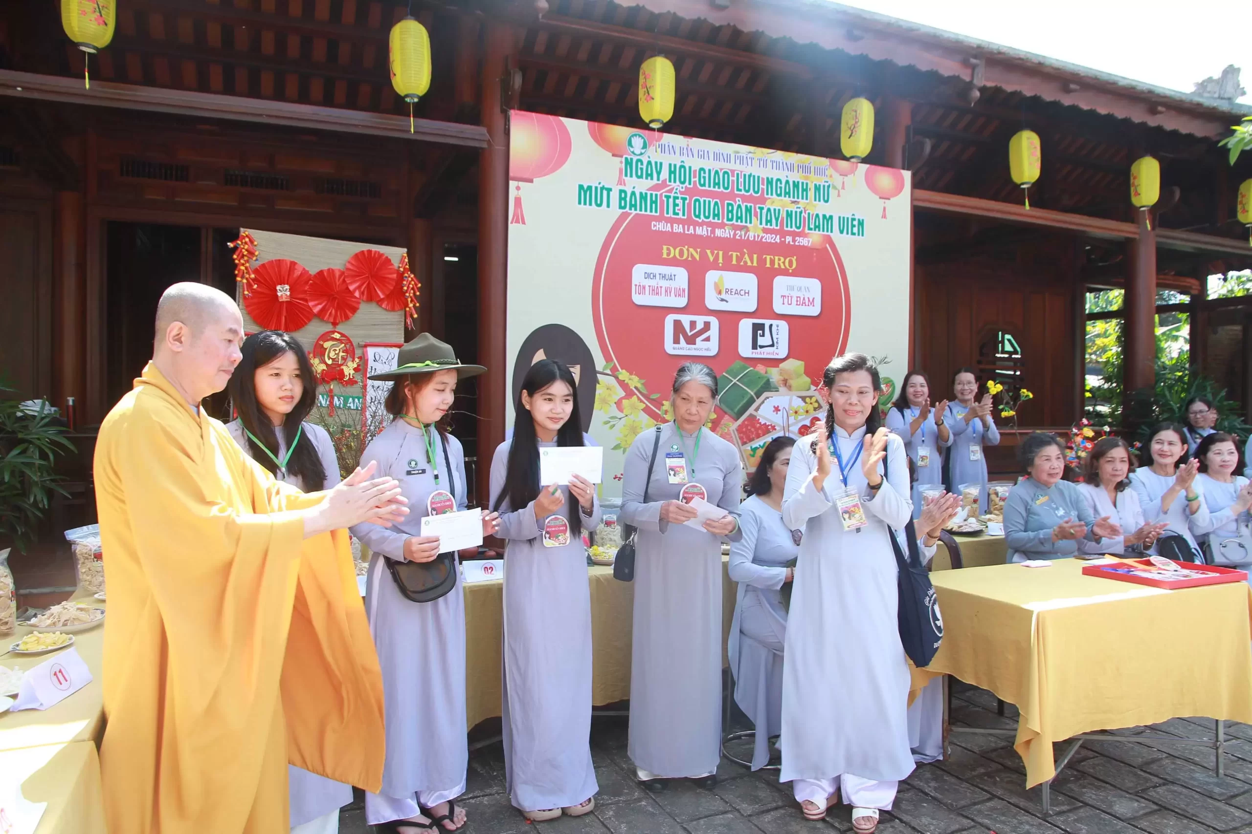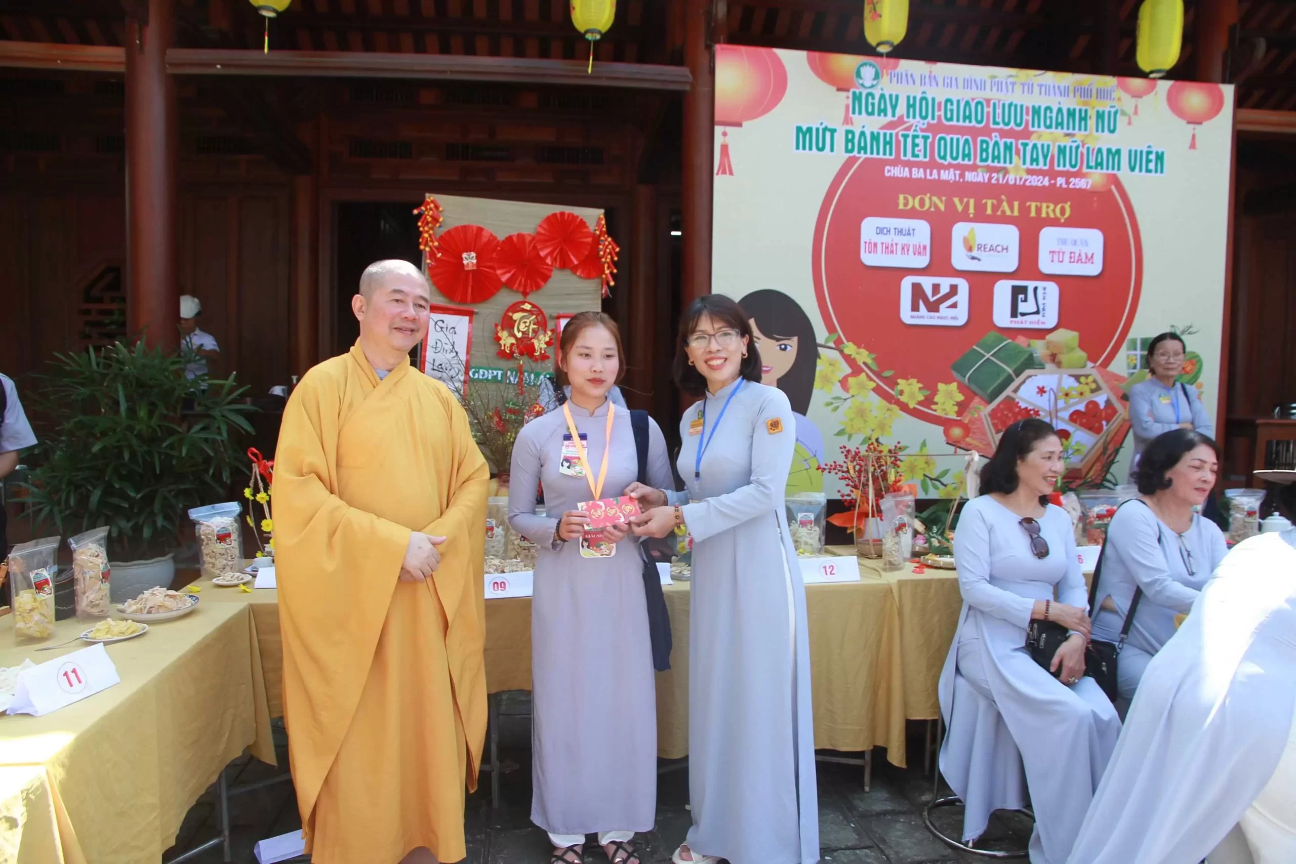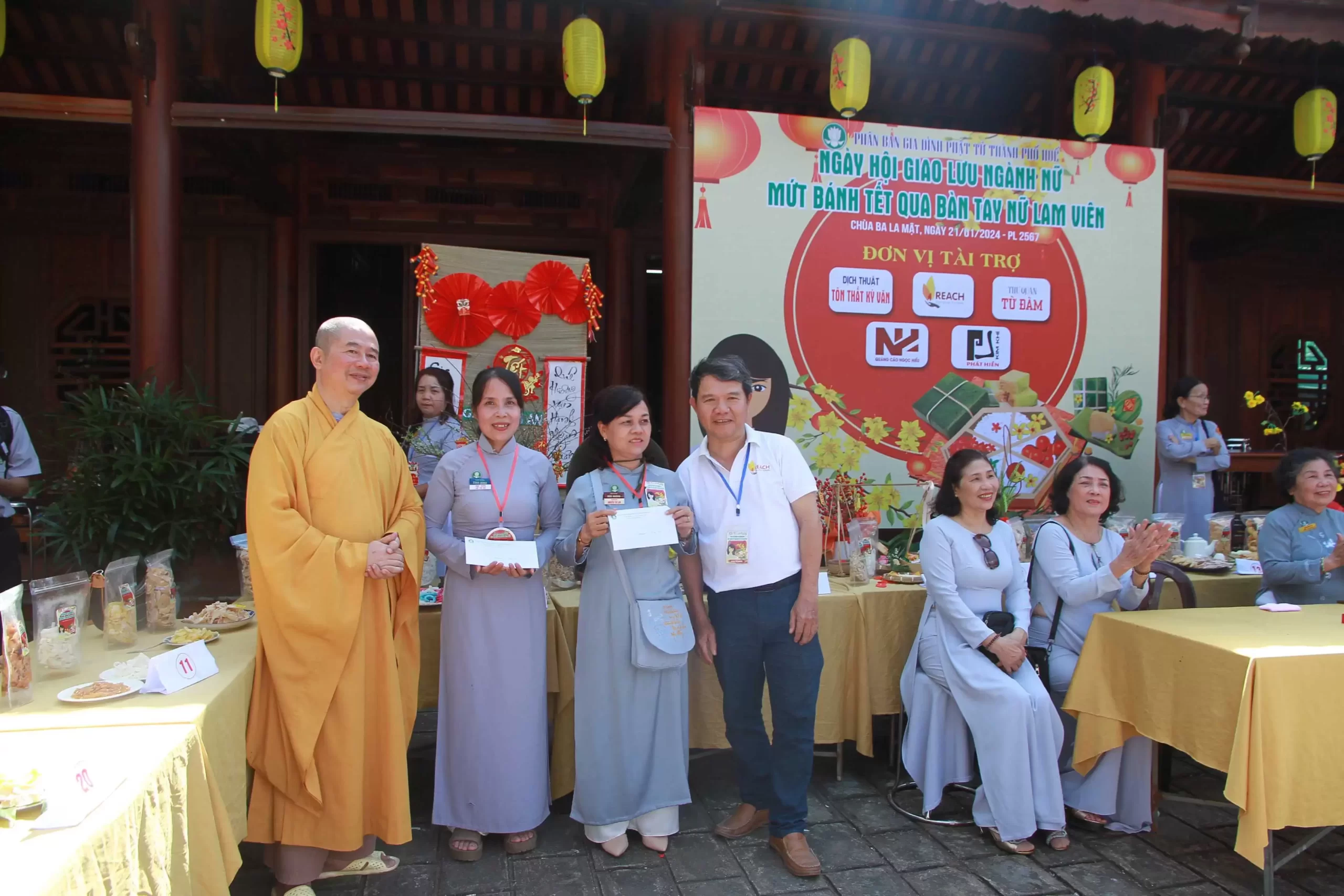 Tiếp theo Chương trình là Lễ khai mạc Ngày hội Giao lưu ngành Nữ với chủ đề “Mứt bánh Tết qua bàn tay Nữ lam viên” và Phiên chợ quê ngày Tết – Đón xuân Giáp Thìn 2024 với sự chứng minh của TT. Thích Thường Chiếu, quý tăng chúng chùa Ba La Mật, và sự thân lâm tham gia của Ông Hoàng Tân Ninh – Ủy viên Thường vụ Thành ủy, Chủ tịch Ủy ban Mặt trận Tổ quốc VN Tp. Huế, cùng đại diện lãnh đạo các ban ngành đoàn thể thành phố gồm Ban dân vận Thành Ủy, Hội liên hiệp Phụ nữ Tp. Huế, và Hội Liên hiệp Thanh niên Tp. Huế. Ngoài ra, quý anh chị thường trực Ban hướng dẫn Phân ban GĐPT Tỉnh TT-Huế do Htr. Cấp Dũng Tâm Ngọc Nguyễn Thị Minh Nguyệt đứng đầu và Thường trực Phân ban GĐPT Tp. Huế cũng đã hiện diện trong buổi lễ. Trong buổi lễ khai mạc, 20 Đoàn sinh khó khăn đến từ các đơn vị GĐPT Tp. Huế cũng đã nhận được những phần quà ấm áp nghĩa tình do Ủy ban MTTQ VN Tp. Huế trao tặng theo tinh thần “Nhiễu điều phủ lấy giá gương – Người trong một nước phải thương nhau cùng”, với tinh thần chia sẻ tình lam trong mỗi dịp Xuân về Tết đến.