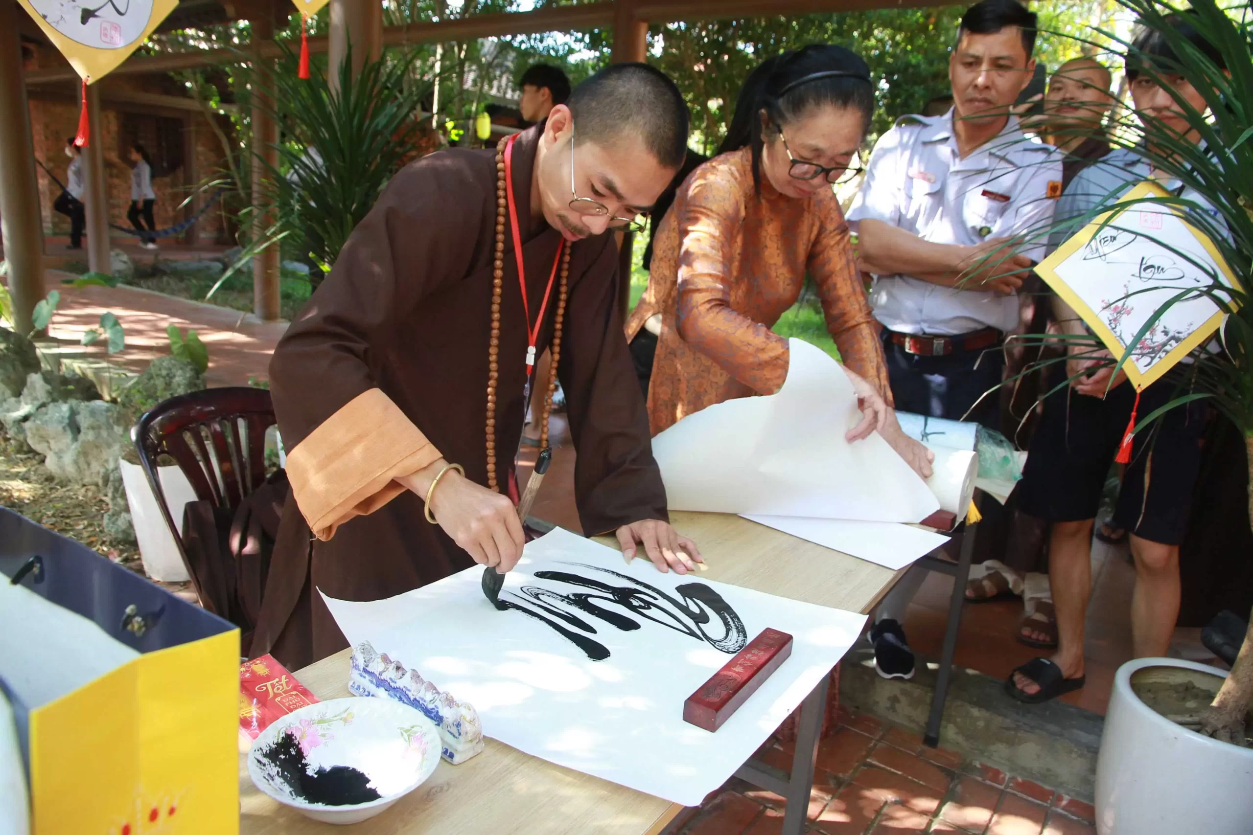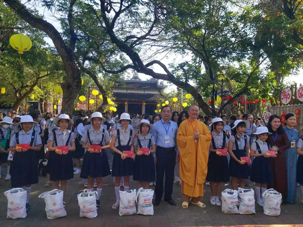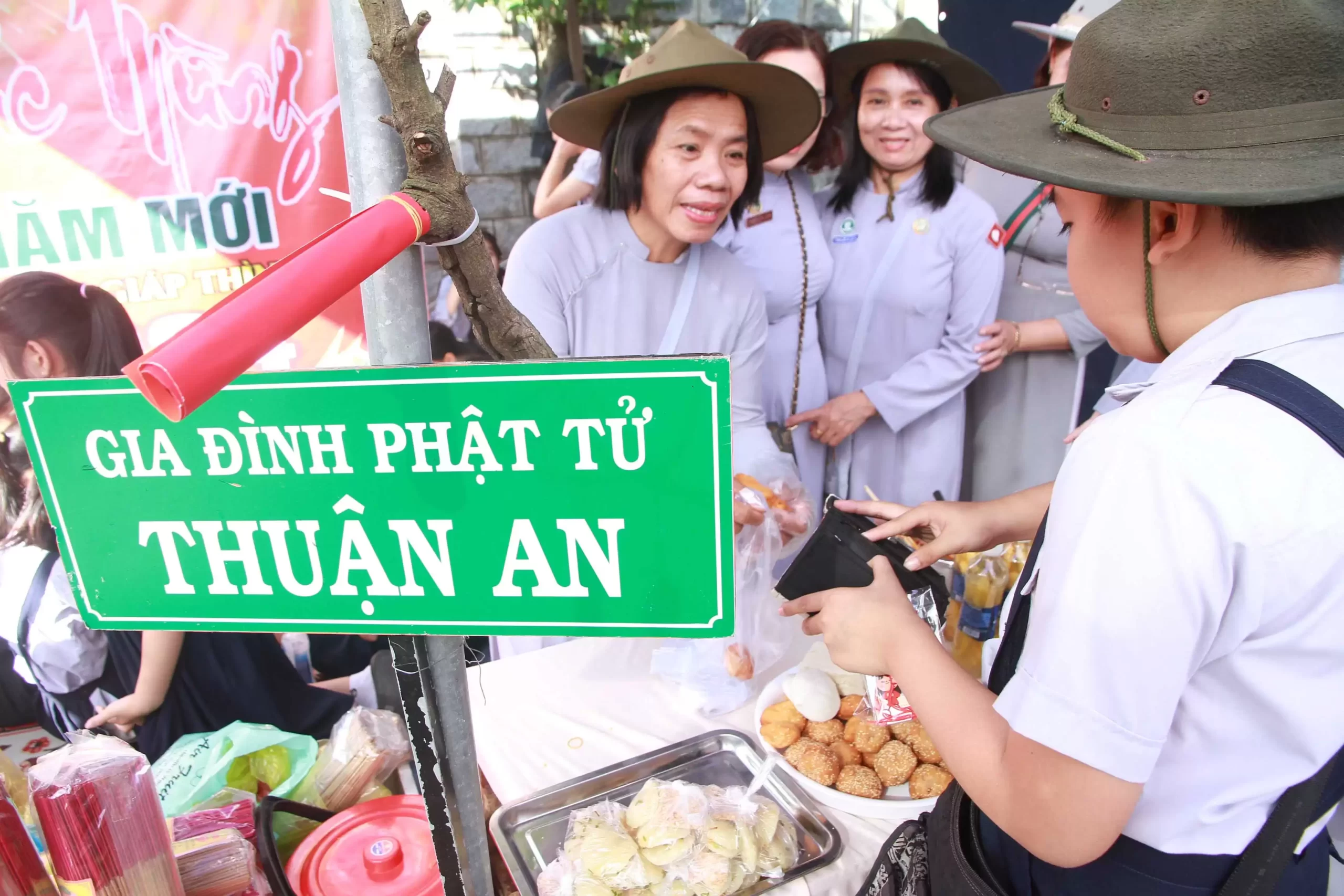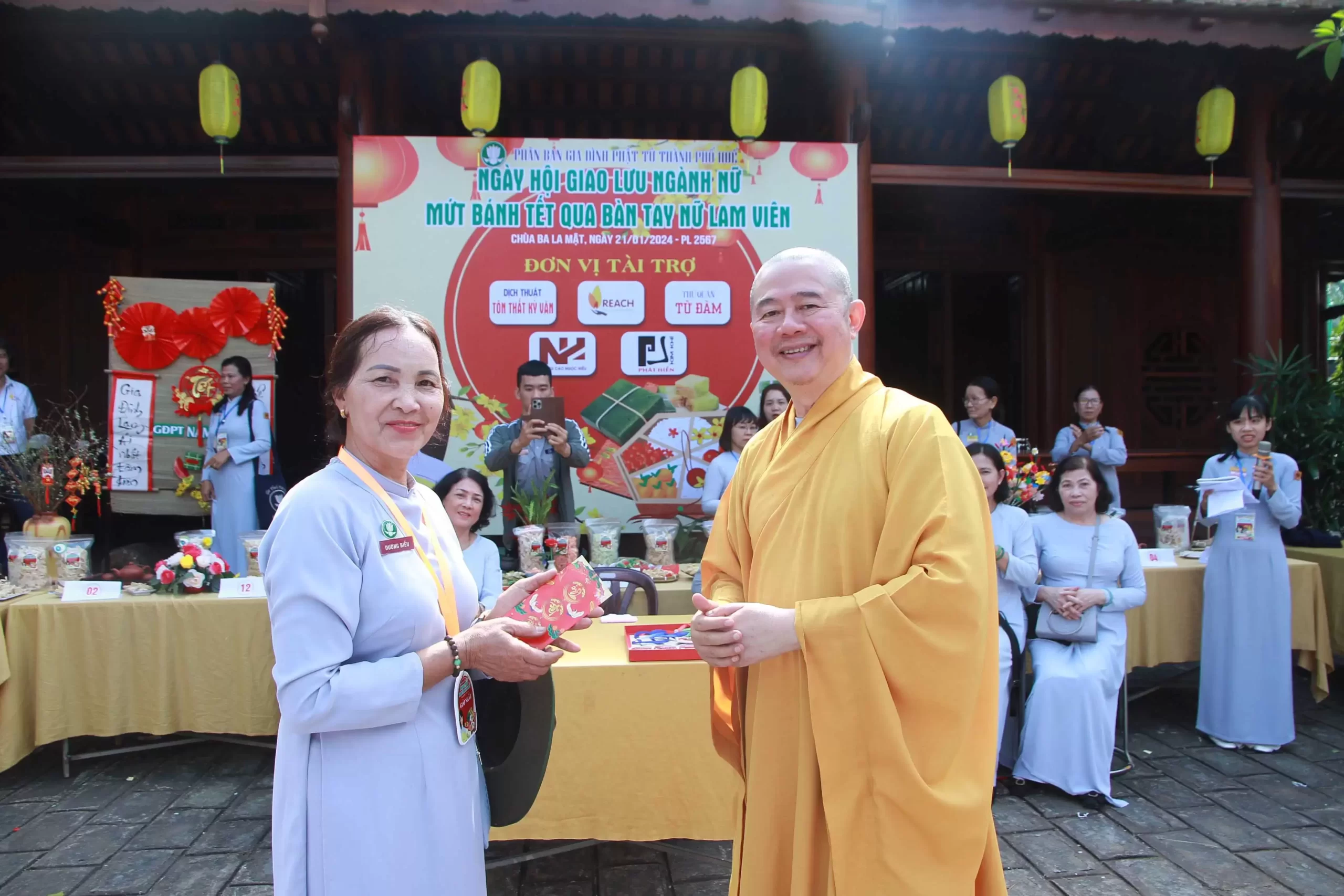 Tiếp theo Chương trình là Lễ khai mạc Ngày hội Giao lưu ngành Nữ với chủ đề “Mứt bánh Tết qua bàn tay Nữ lam viên” và Phiên chợ quê ngày Tết – Đón xuân Giáp Thìn 2024 với sự chứng minh của TT. Thích Thường Chiếu, quý tăng chúng chùa Ba La Mật, và sự thân lâm tham gia của Ông Hoàng Tân Ninh – Ủy viên Thường vụ Thành ủy, Chủ tịch Ủy ban Mặt trận Tổ quốc VN Tp. Huế, cùng đại diện lãnh đạo các ban ngành đoàn thể thành phố gồm Ban dân vận Thành Ủy, Hội liên hiệp Phụ nữ Tp. Huế, và Hội Liên hiệp Thanh niên Tp. Huế. Ngoài ra, quý anh chị thường trực Ban hướng dẫn Phân ban GĐPT Tỉnh TT-Huế do Htr. Cấp Dũng Tâm Ngọc Nguyễn Thị Minh Nguyệt đứng đầu và Thường trực Phân ban GĐPT Tp. Huế cũng đã hiện diện trong buổi lễ. Trong buổi lễ khai mạc, 20 Đoàn sinh khó khăn đến từ các đơn vị GĐPT Tp. Huế cũng đã nhận được những phần quà ấm áp nghĩa tình do Ủy ban MTTQ VN Tp. Huế trao tặng theo tinh thần “Nhiễu điều phủ lấy giá gương – Người trong một nước phải thương nhau cùng”, với tinh thần chia sẻ tình lam trong mỗi dịp Xuân về Tết đến.