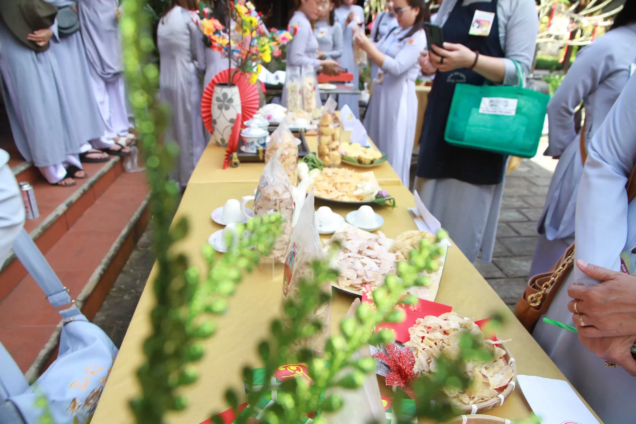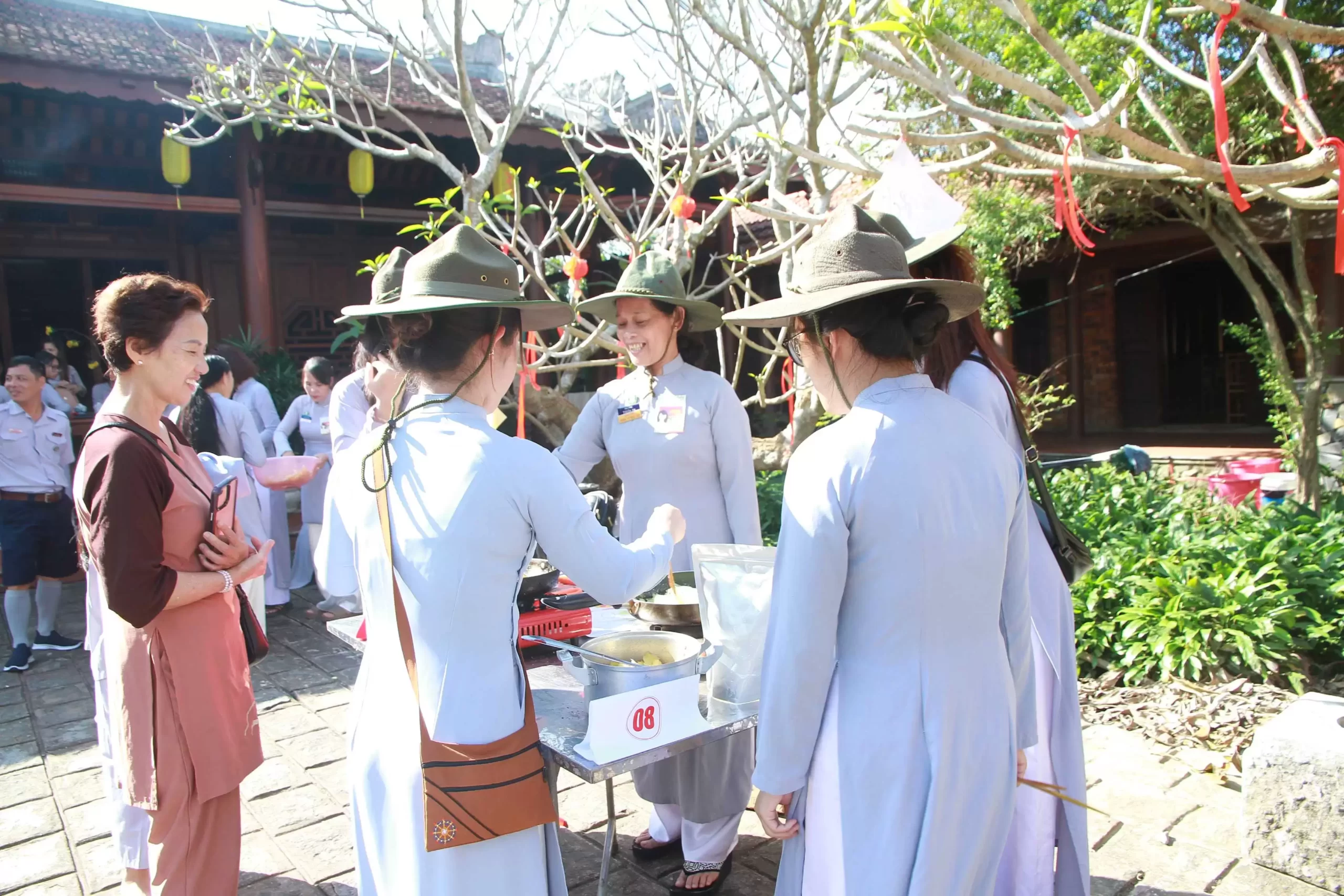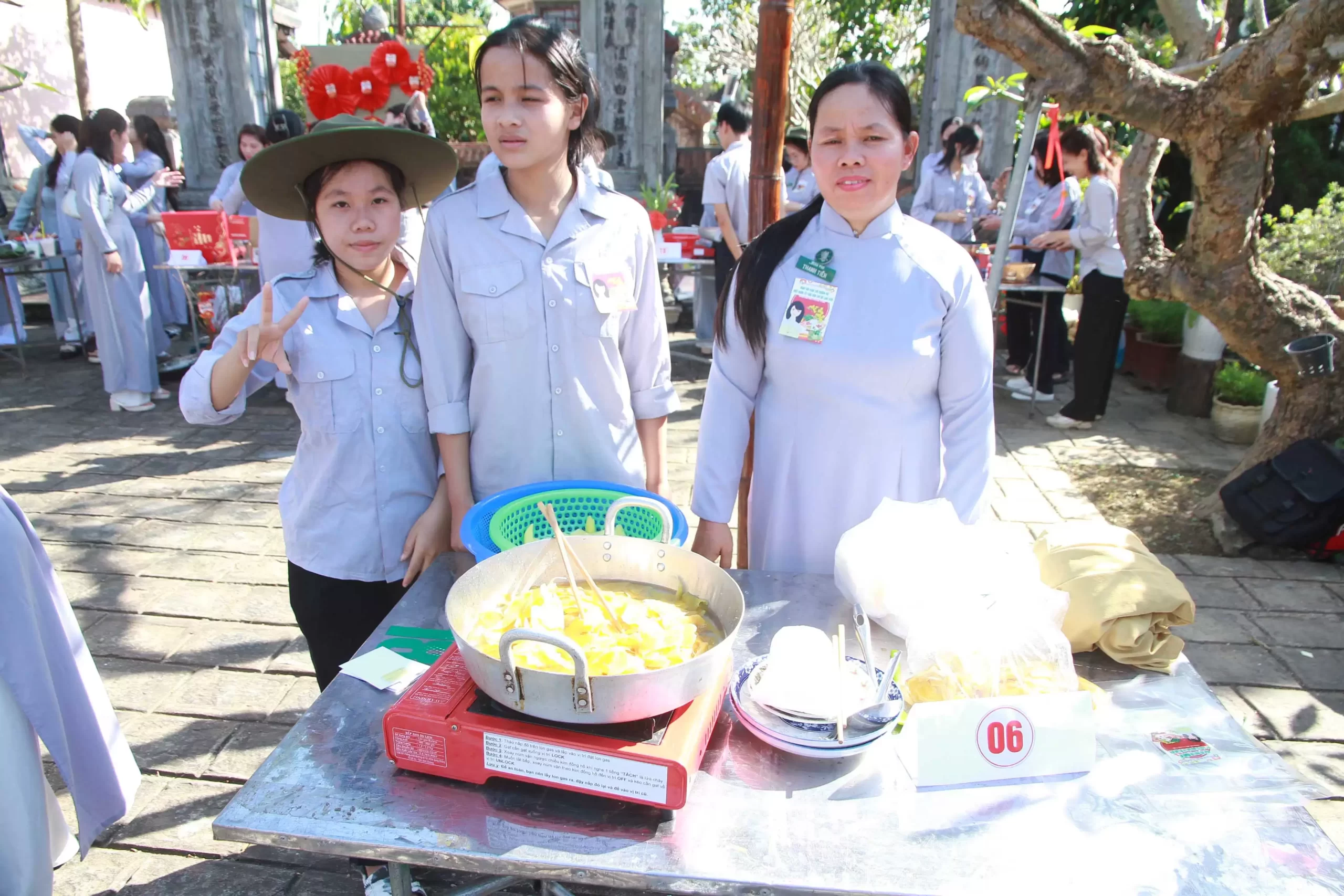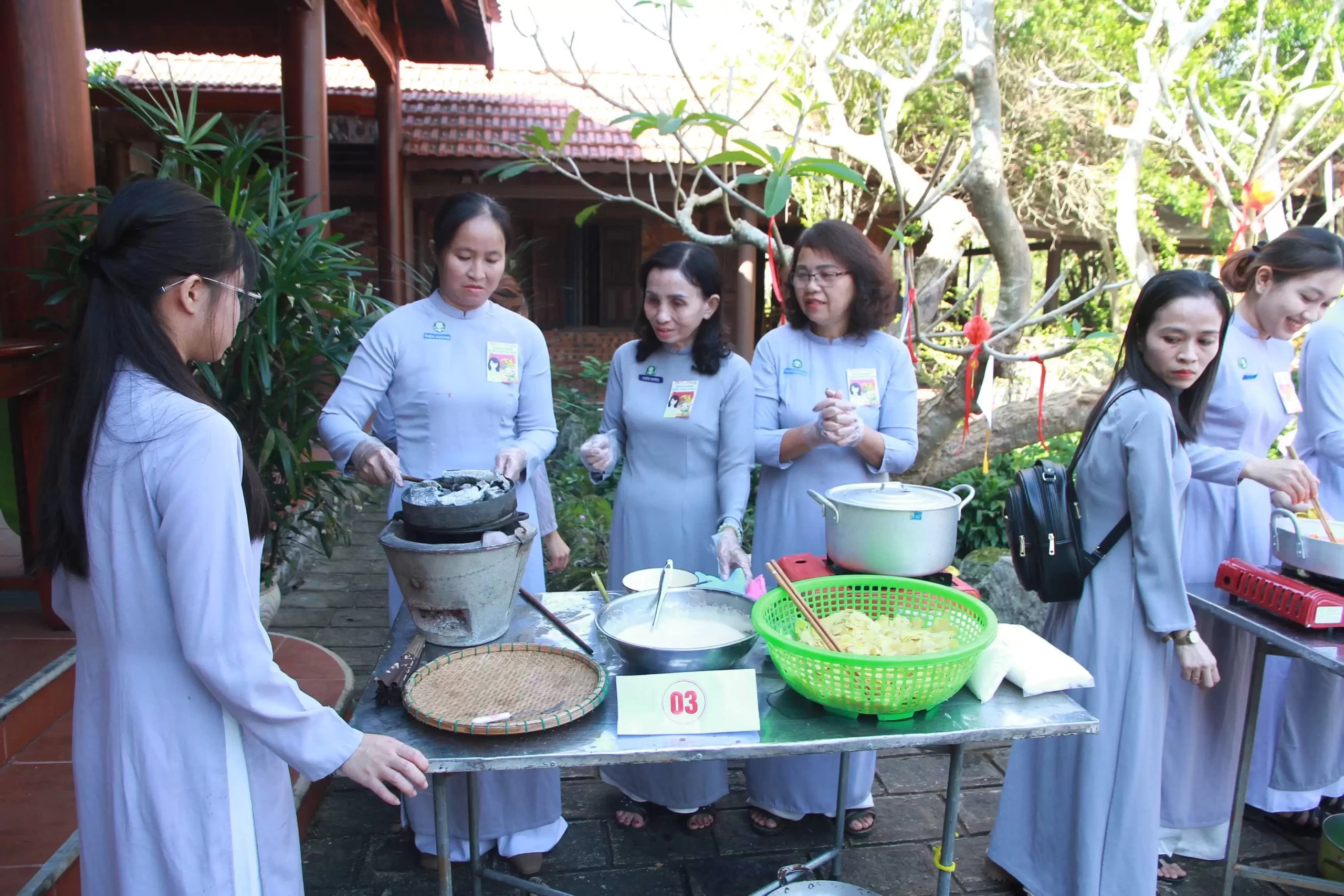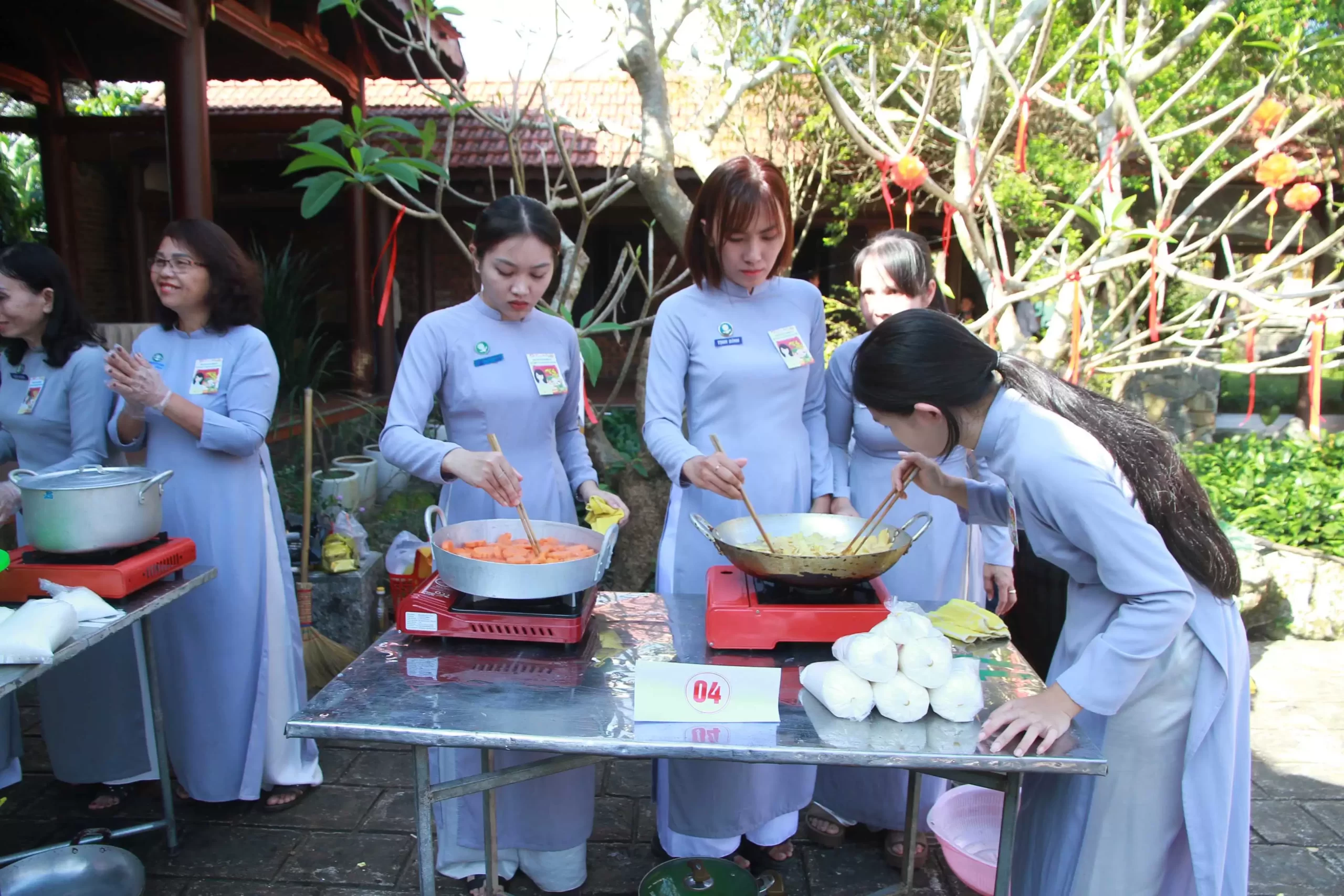 Cũng hào hứng và sôi nổi không kém là góc sân và khoảng trời của các chị, các mẹ, và thậm chí là các bà U80, U70, U60 của đoàn Thiếu Nữ, Thanh Nữ và Huynh trưởng nữ đang trổ tài nữ công gia chánh thật khéo léo và hài hòa của các món Mứt gừng truyền thông và hiện đại hóa, cùng được trình bày thật công phu và đẹp mắt với phần thi đua giao lưu các món bánh mứt đặc sản như mứt dừa, mứt vỏ bưởi, bánh thuẫn, bánh ú nhân đậu xanh dừa, mứt cóc… cùng nhiều thứ bánh mứt hấp dẫn khác để dâng cúng ông bà tổ tiên cũng như dọn khách mỗi khi xuân về Tết đến.
