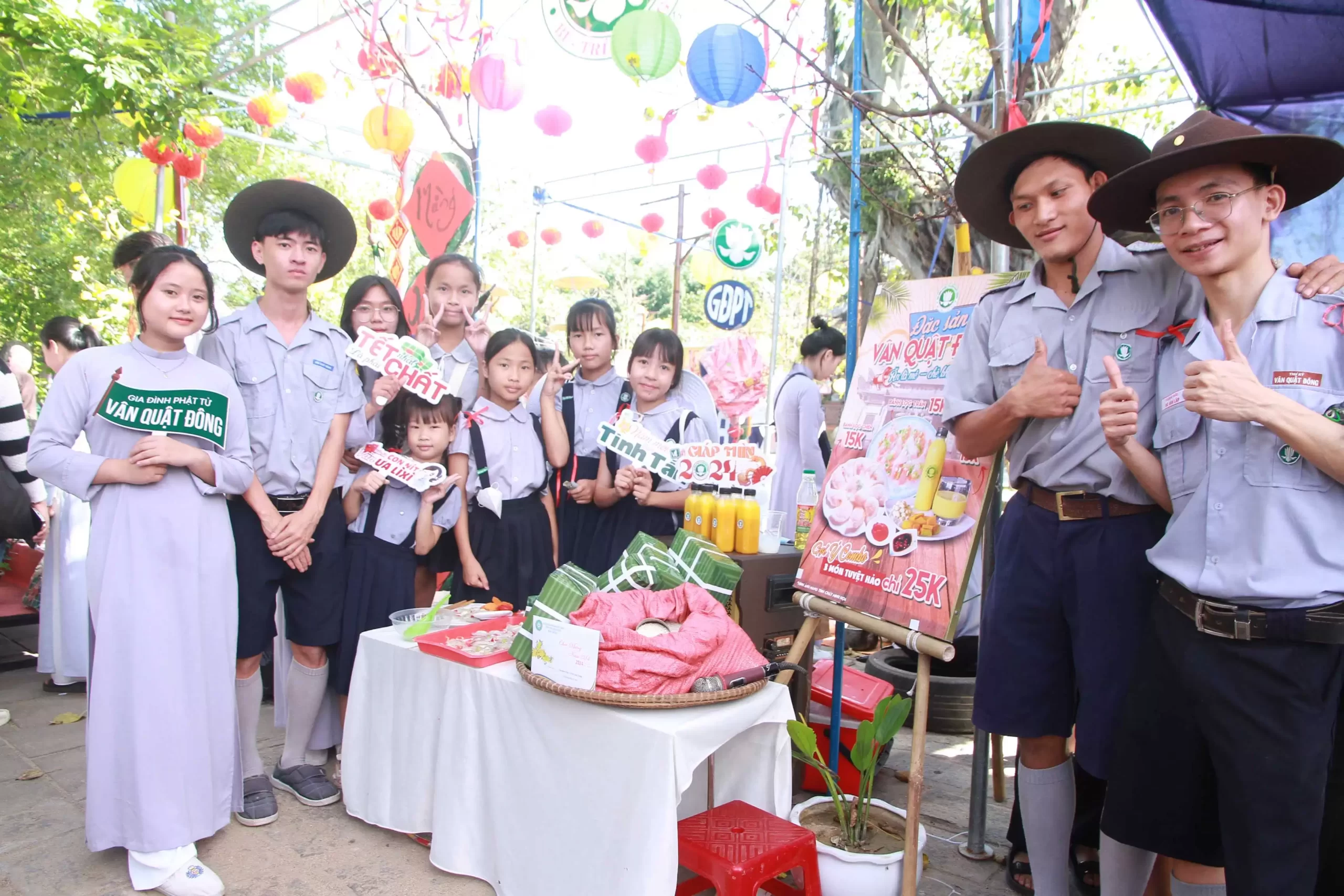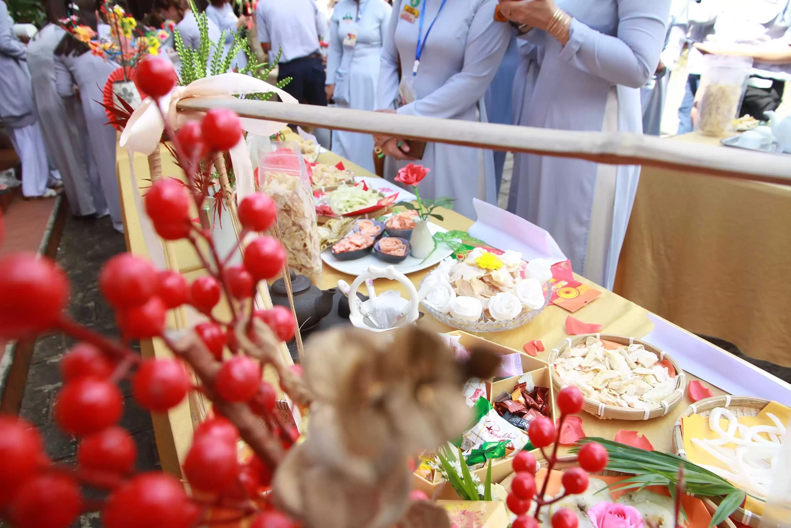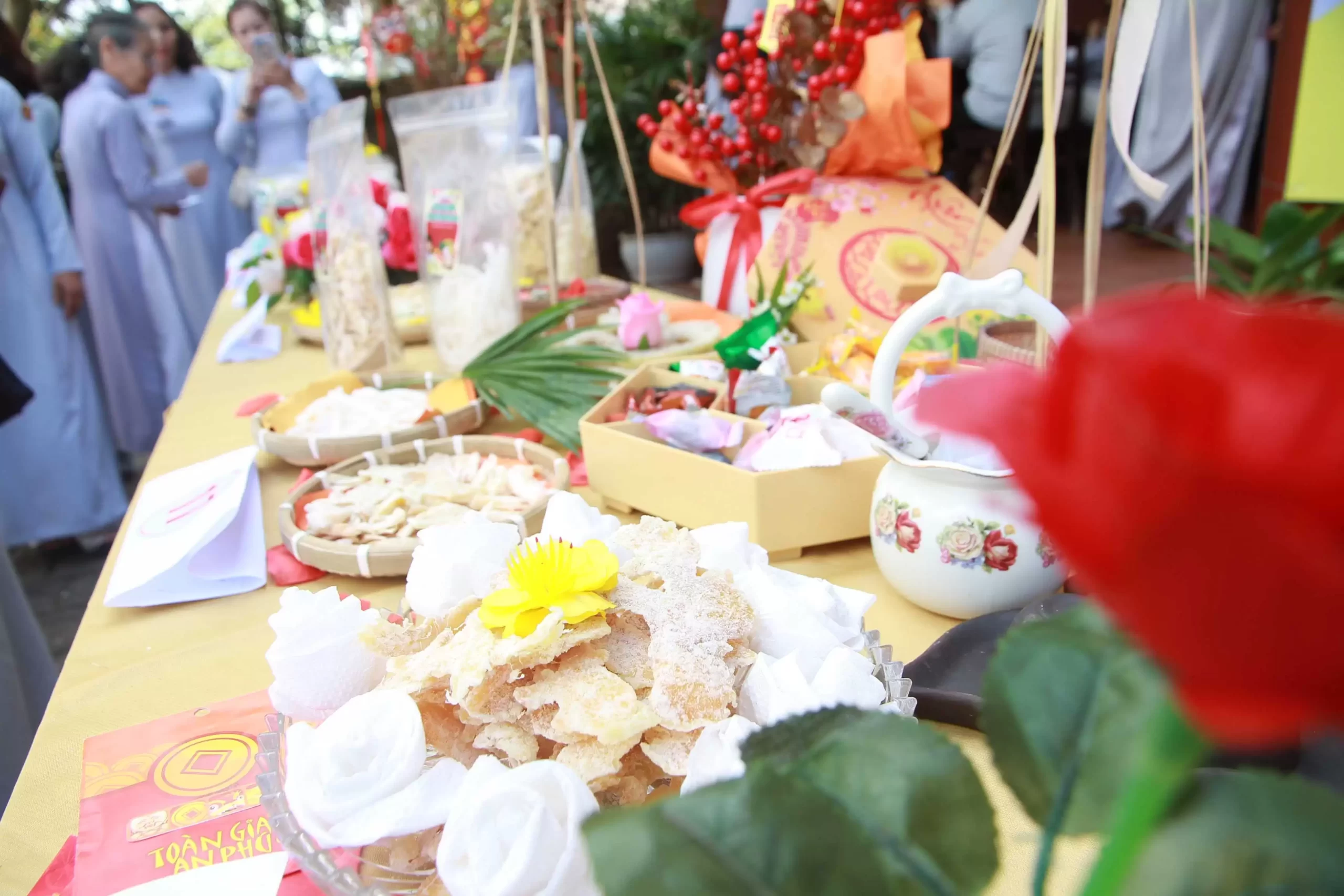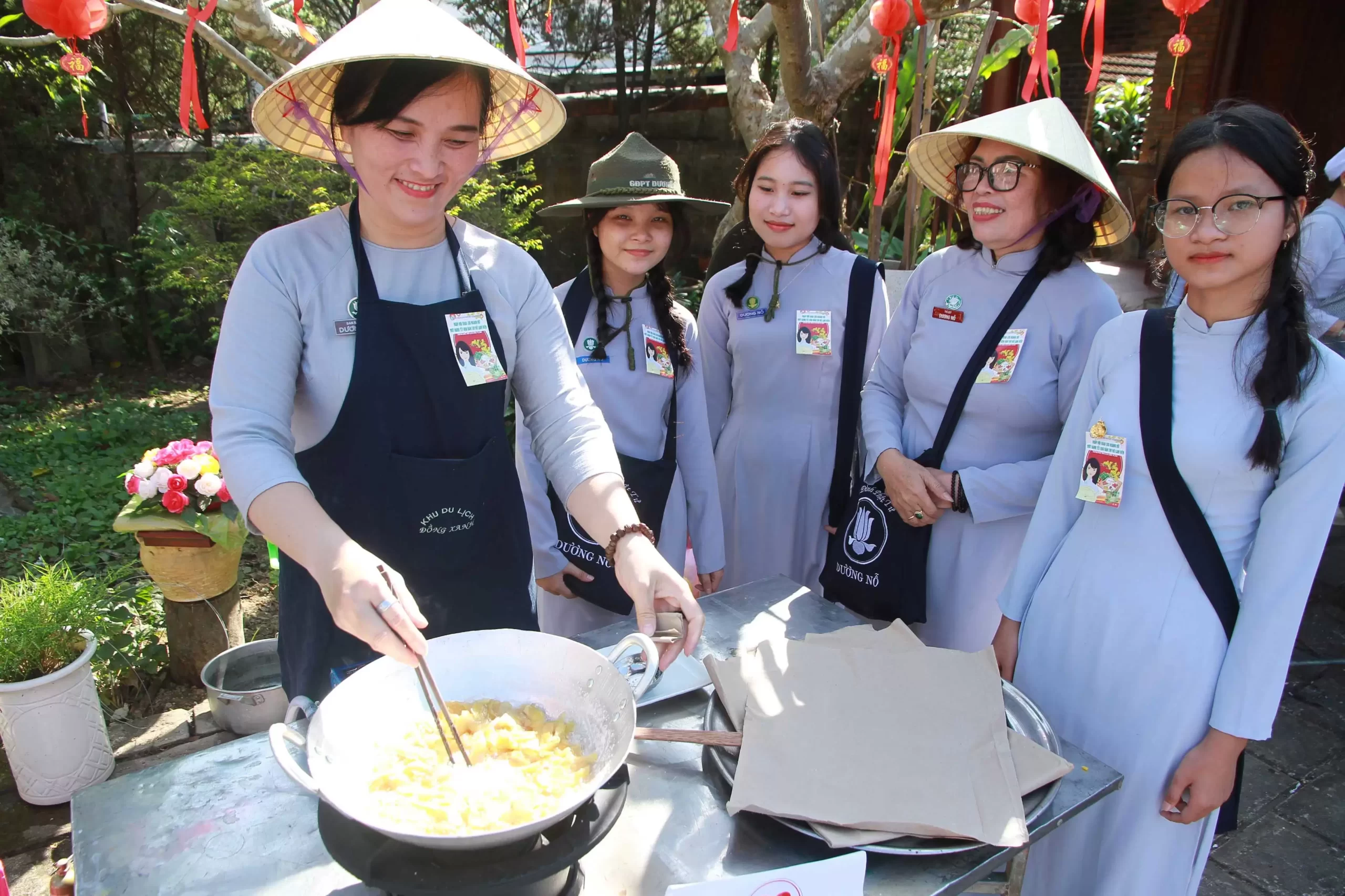 Cũng hào hứng và sôi nổi không kém là góc sân và khoảng trời của các chị, các mẹ, và thậm chí là các bà U80, U70, U60 của đoàn Thiếu Nữ, Thanh Nữ và Huynh trưởng nữ đang trổ tài nữ công gia chánh thật khéo léo và hài hòa của các món Mứt gừng truyền thông và hiện đại hóa, cùng được trình bày thật công phu và đẹp mắt với phần thi đua giao lưu các món bánh mứt đặc sản như mứt dừa, mứt vỏ bưởi, bánh thuẫn, bánh ú nhân đậu xanh dừa, mứt cóc… cùng nhiều thứ bánh mứt hấp dẫn khác để dâng cúng ông bà tổ tiên cũng như dọn khách mỗi khi xuân về Tết đến.