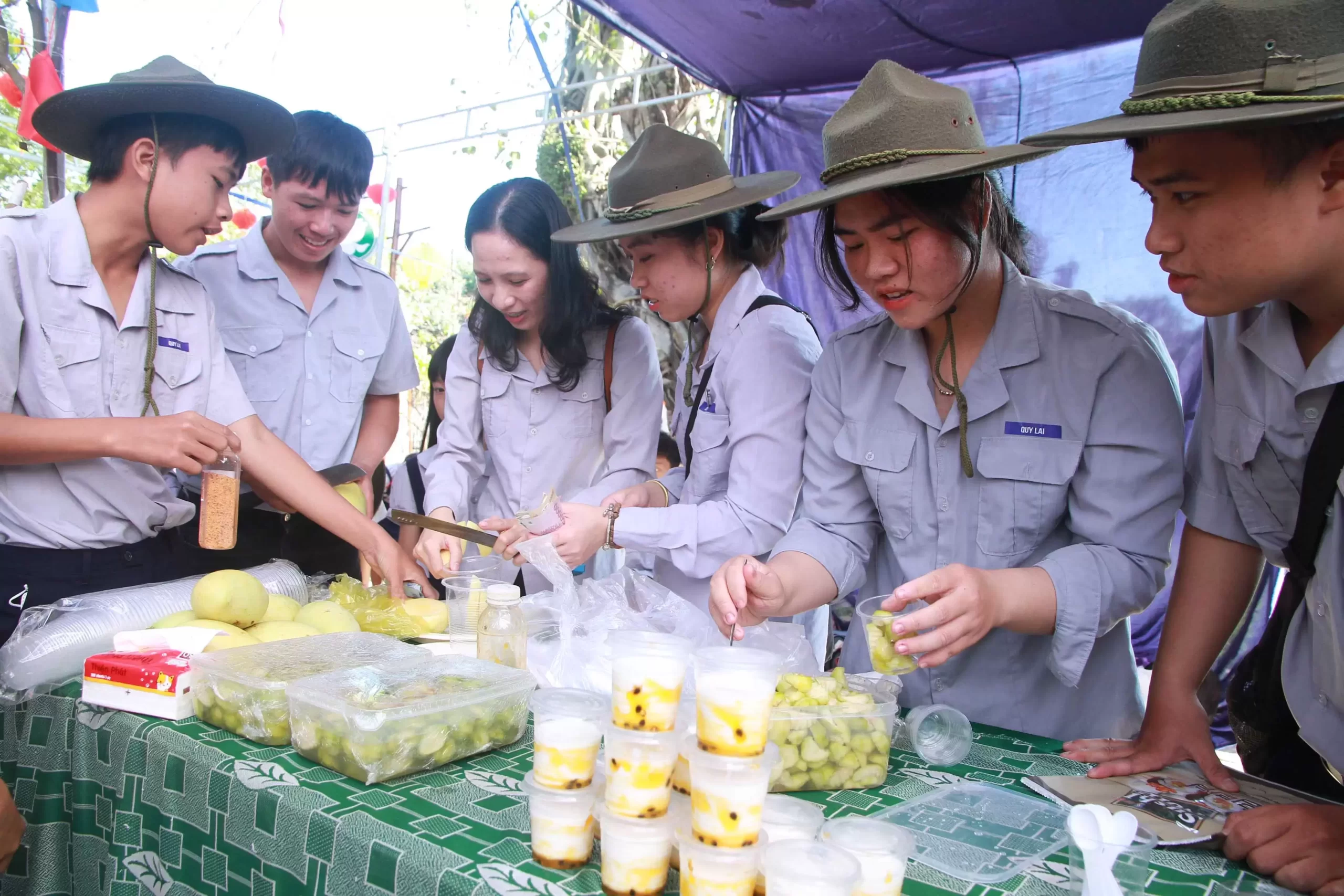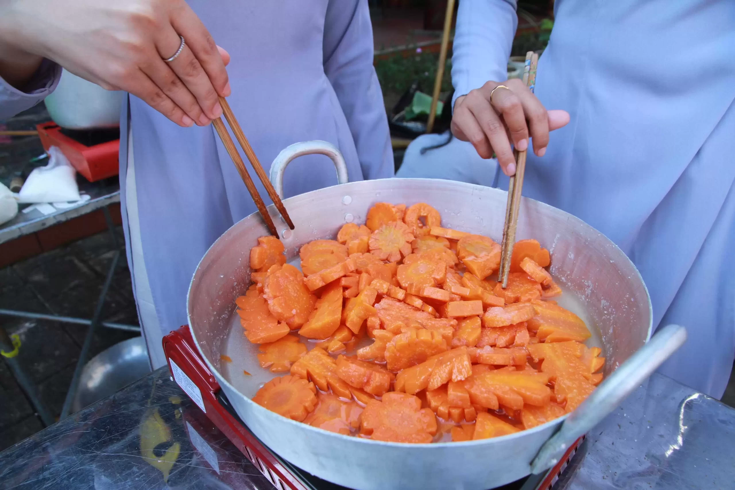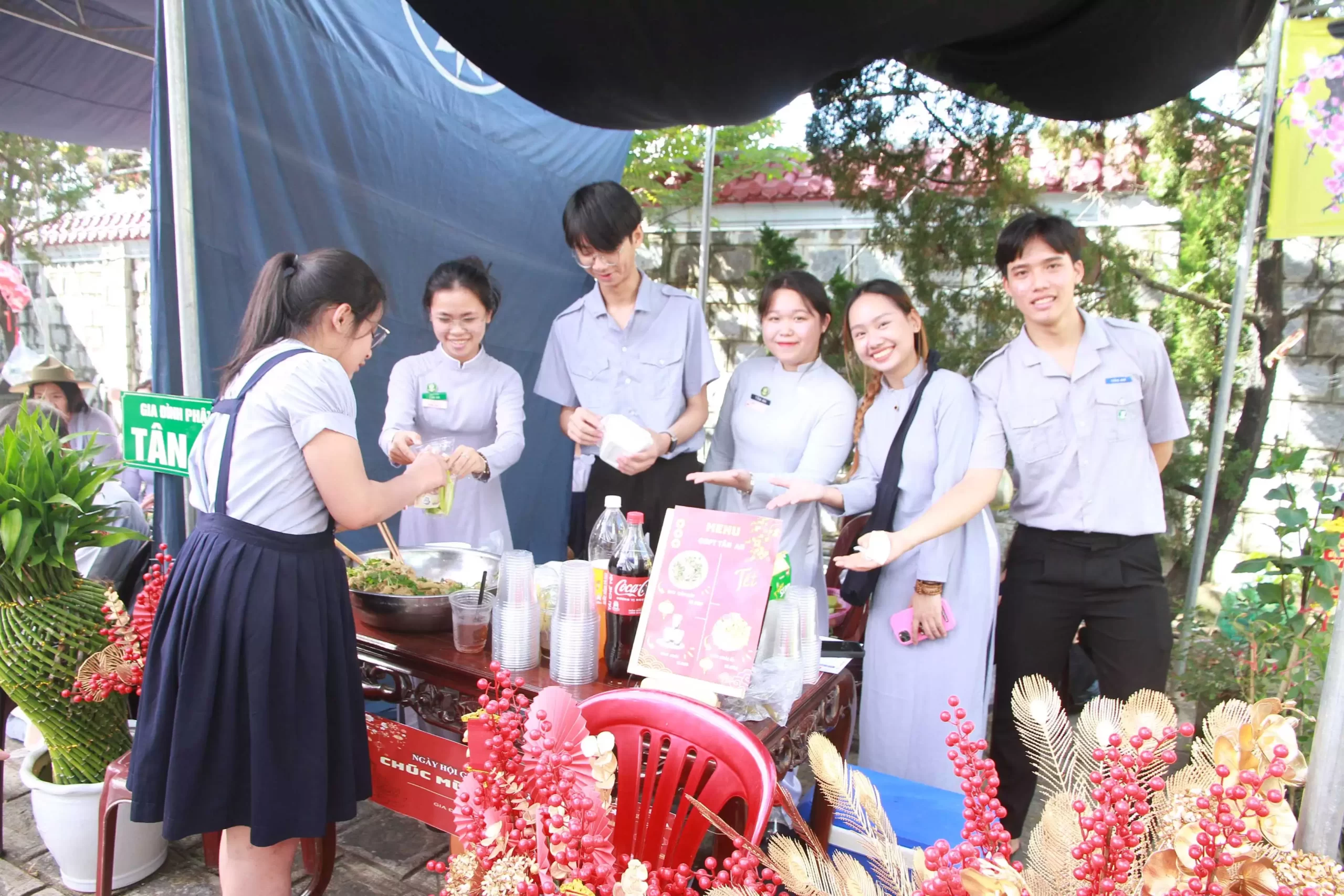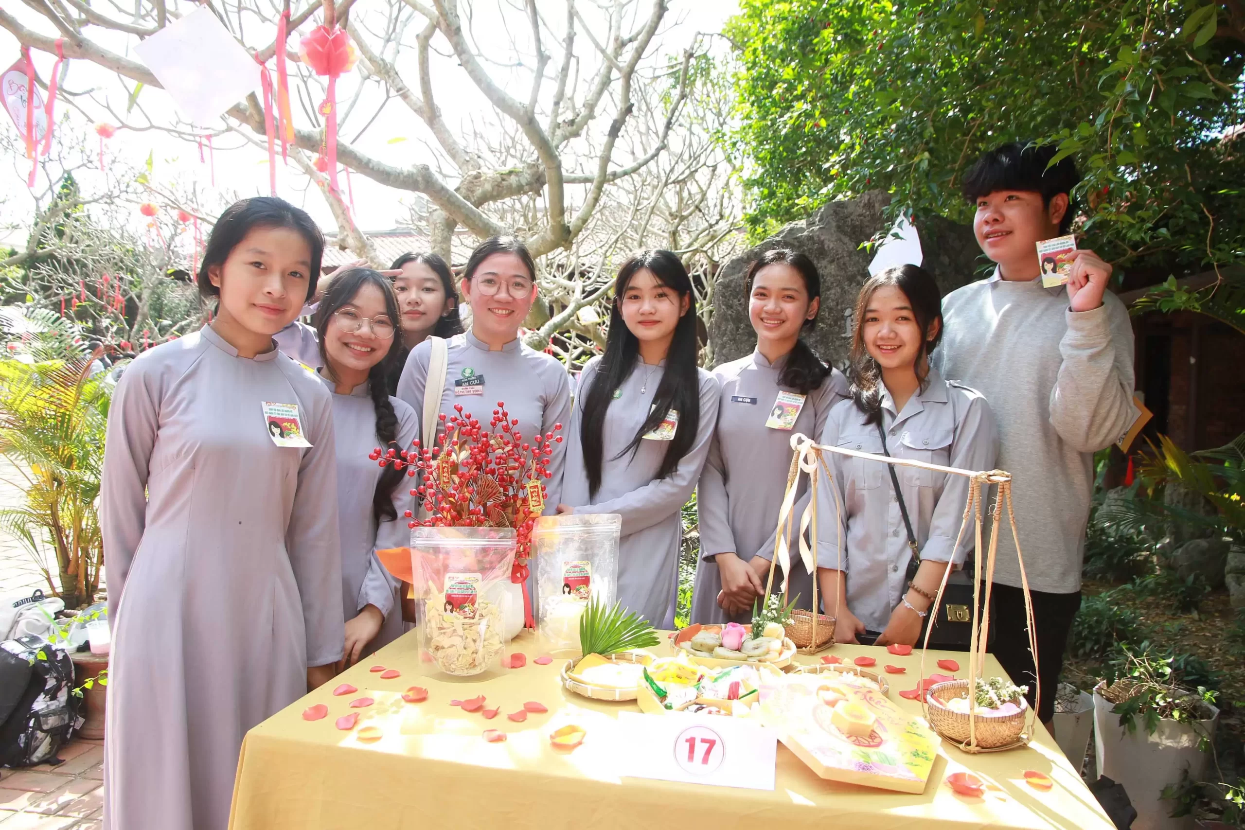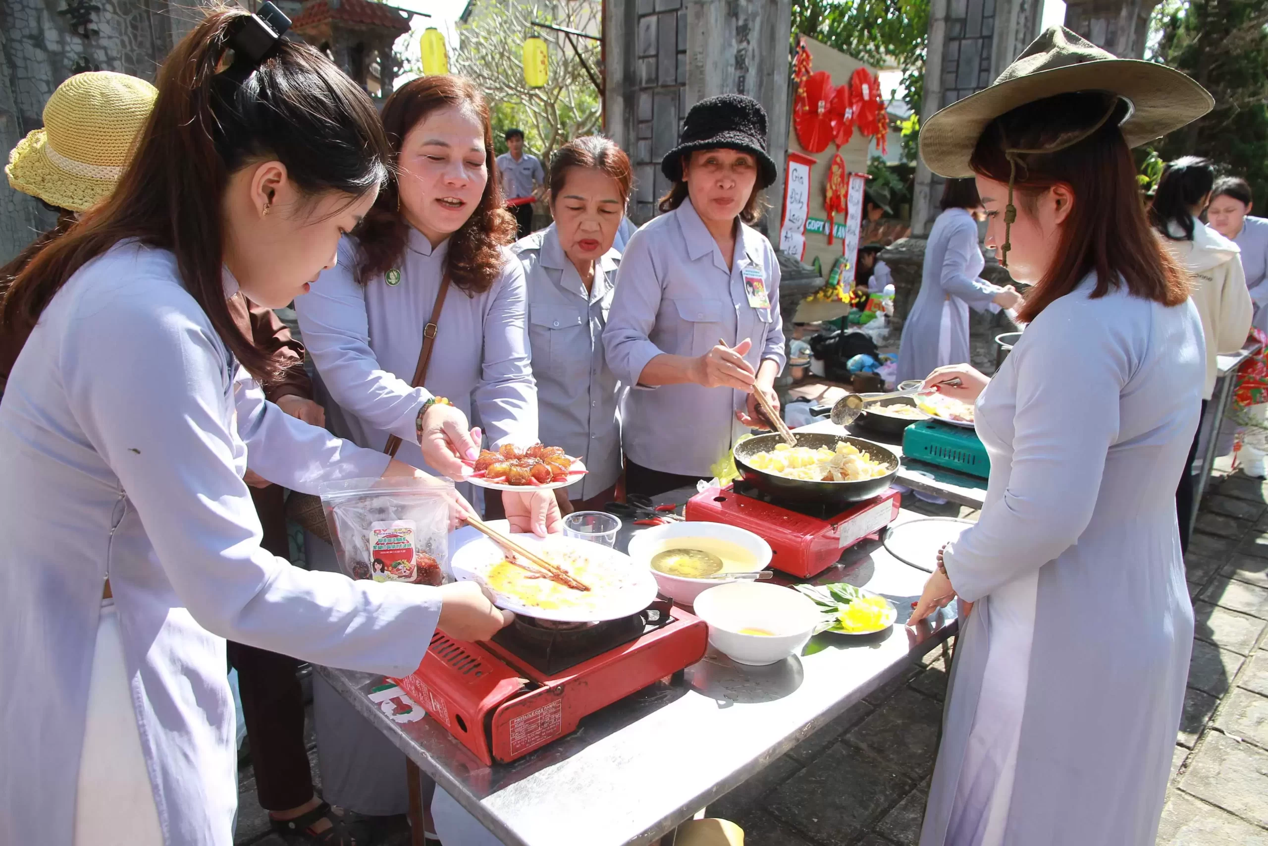 Cũng hào hứng và sôi nổi không kém là góc sân và khoảng trời của các chị, các mẹ, và thậm chí là các bà U80, U70, U60 của đoàn Thiếu Nữ, Thanh Nữ và Huynh trưởng nữ đang trổ tài nữ công gia chánh thật khéo léo và hài hòa của các món Mứt gừng truyền thông và hiện đại hóa, cùng được trình bày thật công phu và đẹp mắt với phần thi đua giao lưu các món bánh mứt đặc sản như mứt dừa, mứt vỏ bưởi, bánh thuẫn, bánh ú nhân đậu xanh dừa, mứt cóc… cùng nhiều thứ bánh mứt hấp dẫn khác để dâng cúng ông bà tổ tiên cũng như dọn khách mỗi khi xuân về Tết đến.