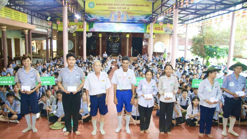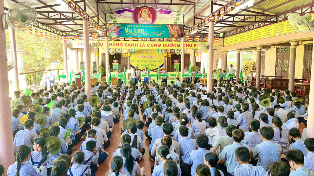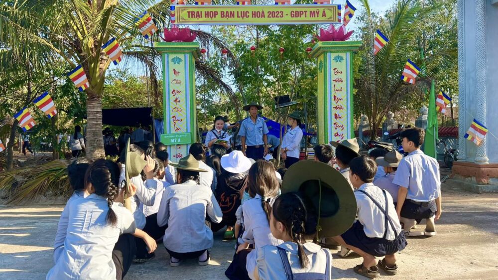 Sáng 17/08/2023 ( 02/07 Quý Mão), tại Chùa Cổ Mỹ Á, xã Giang Hải, huyện Phú Lộc, TT. Huế; 600 Huynh trưởng, Đoàn sinh 17 đơn vị Gia đình Phật tử ( GĐPT) thuộc Phân ban GĐPT huyện Phú Lộc đã trở về tham dự Hội trại Họp Bạn Lục Hoà 2023