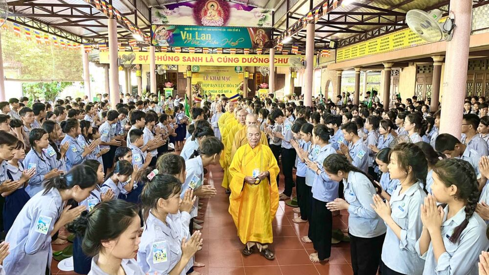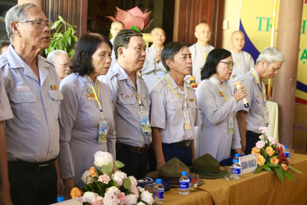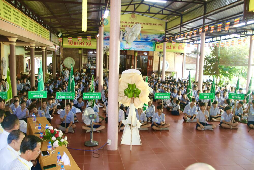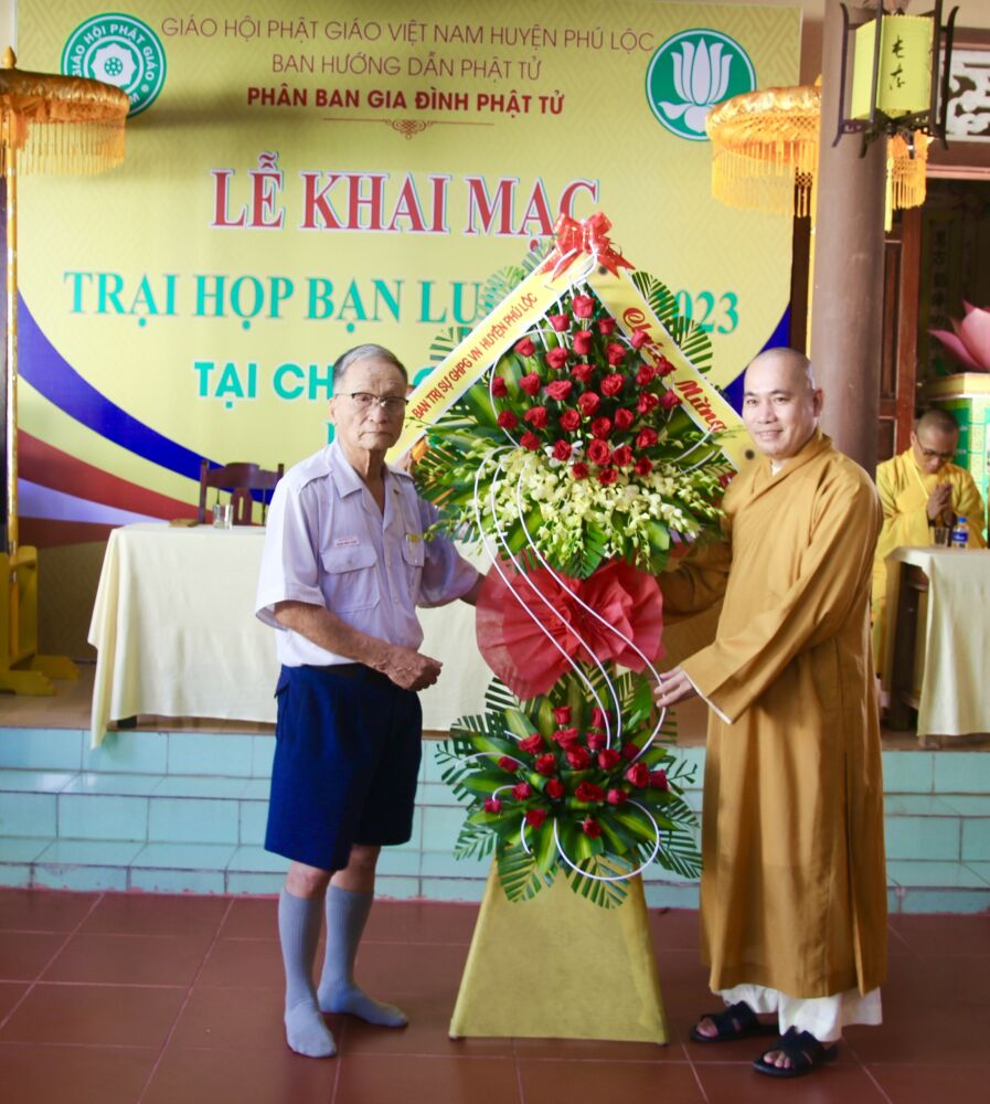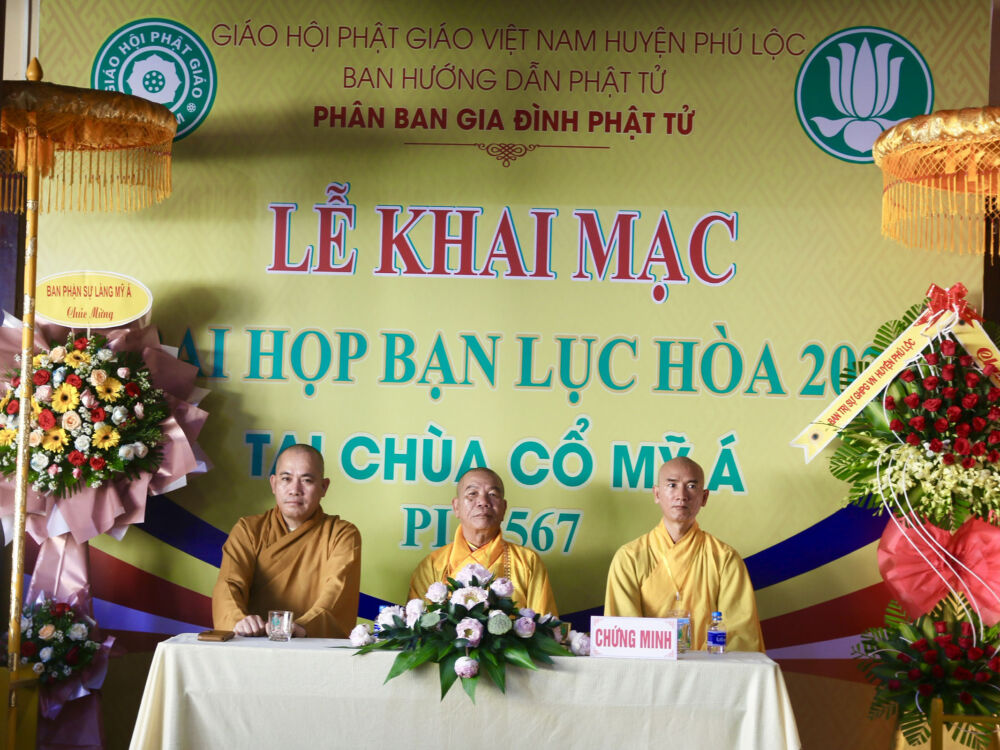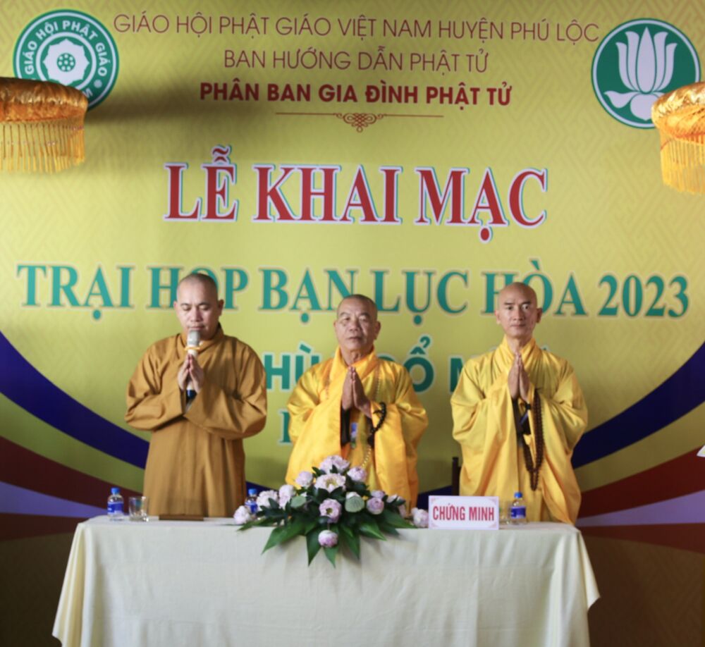 Chiều cùng ngày (17/08/2023 – Nhằm ngày 02/07 Quý Mão), đã long trọng diễn ra buổi lễ Khai mạc “Trại họp bạn Lục Hòa GĐPT huyện Phú Lộc 2023” Quang lâm chứng minh tham dự buổi lễ có Hòa thượng Thích Hạnh Trí- Giáo phẩm Chứng minh BTS GHPGVN huyện Phú Lộc, Đại đức Thích Hồng Nghĩa – UV BTS tỉnh, Trưởng Ban trị sự GHPGVN huyện Phú Lộc; Đại đức Thích Pháp Niệm – Phó trưởng Ban trị sự kiêm Trưởng ban Giáo dục Phật giáo GHPGVN huyện Phú Lộc; Đại đức Thích Minh Đạo- Chánh Thư ký BTS kiêm Trưởng ban TTTT GHPGVN huyện Phú Lộc; Đại đức Thích Phước Đạt- Trưởng ban Hướng dẫn Phật tử GHPGVN huyện Phú Lộc, Đại đức Thích Thiền Như; Phó Thường trực Ban Hướng dẫn Phật tử GHPGVN huyện Phú Lộc, Trú trì chùa Cổ Mỹ Á; Đại đức Thích Hạnh Trung- Phó Thường trực Ban Nghi lễ GHPGVN huyện Phú Lộc; Ni trưởng Thích Nữ Huệ An- Cố vấn giáo hạnh GĐPT huyện Phú Lộc; Sư cô Thích Nữ Tịnh Ý- Phó thư ký BTS kiêm Trưởng ban Văn hoá GHPGVN huyện Phú Lộc; Sư cô Thích Nữ Hạnh Hồng- Uỷ viên BTS GHPGVN huyện Phú Lộc; Sư cô Thích Nữ Hiền Thảo- Uỷ viên BTS GHPGVN huyện Phú Lộc.
