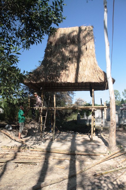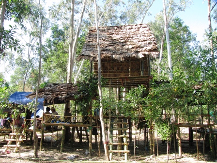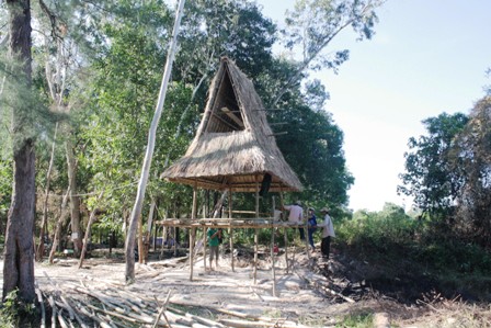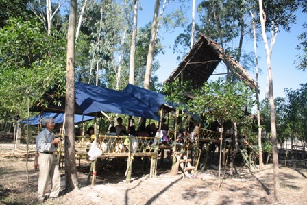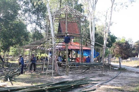 Phía sau khu rạp và sân khấu các thợ cơ khí đang thi công một ngôi nhà sàn to lớn bằng sắt có không gian rộng khoảng hơn 100 mét vuôn, đây có thể là khu trại của Ban Tổ chức và cũng là nơi dành để cung đón chư tôn đức và quan khách đến dự khai mạc và thăm trại. Sát bên là một khu trại lúp súp che bạt xanh bên trong đã trải hàng chục tấm sàn đan bằng tre đây có thể là khu ẩm thực của Ban Tổ chức và quan khách.