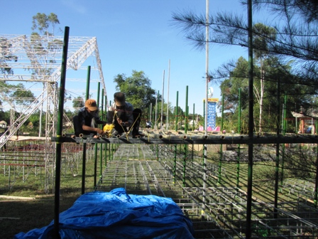 Tại khu Trung tâm của Hội trại, một chiếc rạp lơn đến vài trăm mét vuông bằng sắt rất hiện đại cũng đã được dựng lên, các công nhân cơ khí đang rất khẩn trương thi công. Phía đầu của chiếc rạp, thiết kế một sân khấu cũng bằng sắt, sàn lướt ván nằm gọn trong một ngăn đầu của chiếc rạp tránh được mưa nắng.